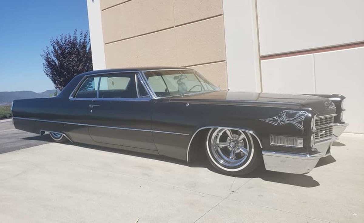 Anthony and Ashley were thinking of getting a 1959 Cad, but they had a ’66 Fleetwood previously, and loved it, so when they found this Coupe de Ville last January, they jumped on it. The car is rolling on a C-notched frame, bags, whitewalls, Supremes, and the stance is picture-perfect. A stock 429 V8 provides power, and while most of the running gear is stock, the car did get a set of front disc brakes by Classic Performance.