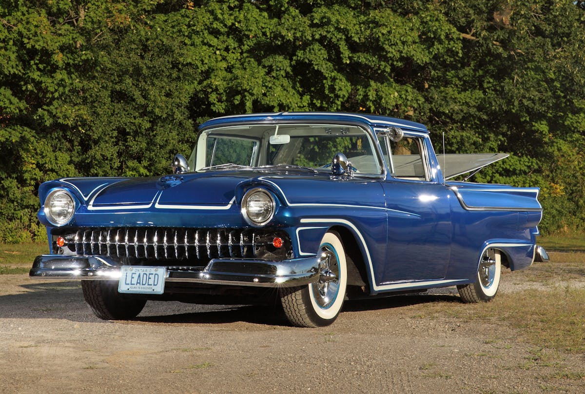Edsel never had an equivalent Ranchero, but Ford did offer a wagon that shared certain trim with the ill-fated brand. Incorporating ’58 Edsel Villager taillamps was a clever and very effective trick. Quarter-panel top edges where raised 3/8-inch to make the transition to the Edsel lights flow smoothly. Stock ’57 Ranchero bumpers where retained, but the OEM guards were removed and smoothed to clean up the bumper lines.