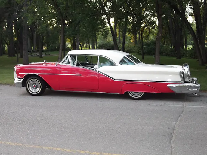 On the outside of the car, you’ll find a continental on the back, which the original owner put on, and fender skirts that were a gift from the Michurskis. Other than that, the car is close to factory-original aesthetically, right down to the Rose and White paint job that gets refreshed about every 20 years.