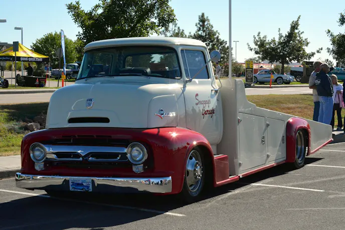 With Mark having a recently-built 1963 ½ Galaxie nicknamed “Black Beauty” and Suzy having a custom 1966 Ford F-100 she calls “Truckee-la”, it was only a matter of time before the couple found their next project vehicle – a custom COE hauler to transport one of the other classic vehicles in their stable to car shows. On their way home from the 2015 Goodguys Colorado Nationals, they found just the truck.