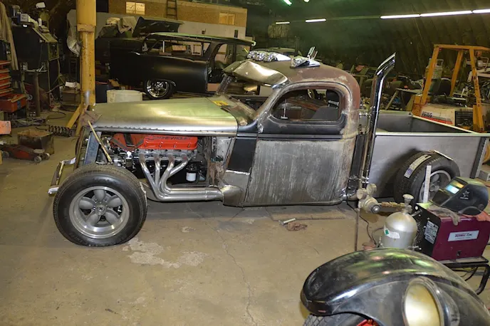The first project that caught our eye was the rat rod truck being worked on that day by Jason Whitehead. This truck belongs to Robert Johnson from North Carolina. Johnson owns a trucking firm and had enlisted Dean’s to build him a Kenworth inspired rat rod truck.