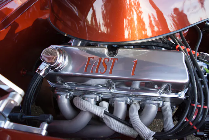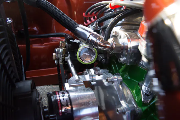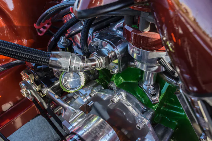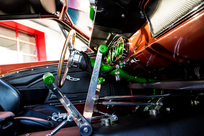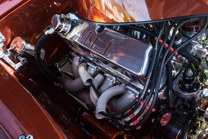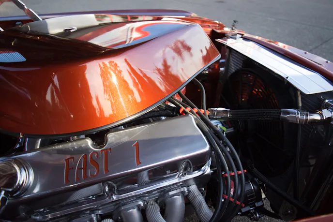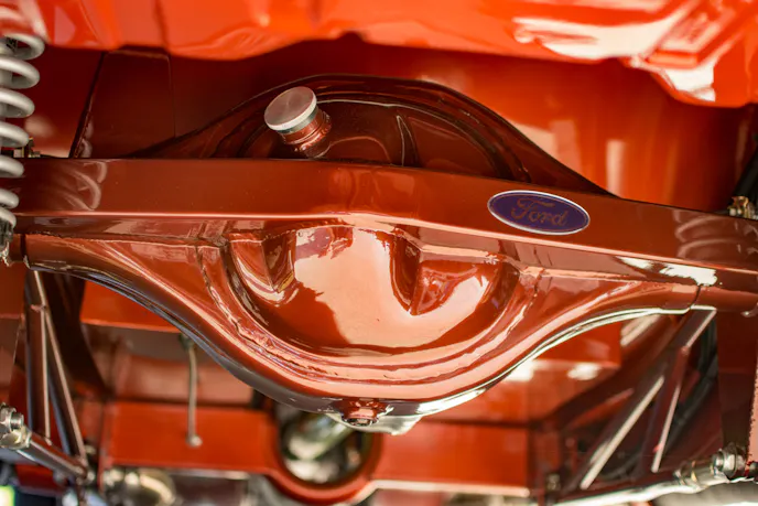 Gary built the engine in his garage with his friend Arlyn Staiger. It’s a 1969 351 cubic-inch Windsor block that is bored and stroked out to 418 cubic-inches and makes use of a Scat stroker kit. He uses an Edelbrock Victor Jr. intake and heads, Demon 920cfm carburetor, and had the heads ported by Keithcraft racing. The ignition system has also been improved with a Mallory electronic distributor and an MSD programmable 6AL2 control module. All of the power from the engine is transferred through a unique, Jeffco four-speed transmission and into a Ford 9-inch rearend.