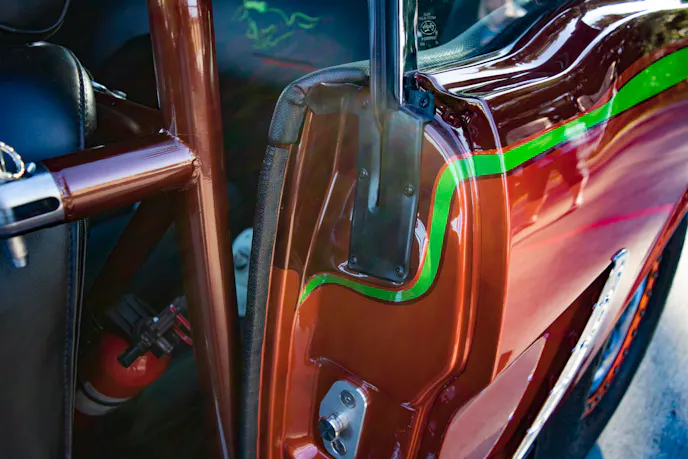 The color choice came from a calculated plan to get the right color for the end goal. Gary drove around town at different times of day in different lights until he found the perfect colors. “I envisioned the paint job years before I did it.” Gary explained. “When I told people the color, even my wife, they’d say they weren’t sure about it, but I told them: It’s going to look badass, just you wait.” The paint job definitely turned out to be badass.