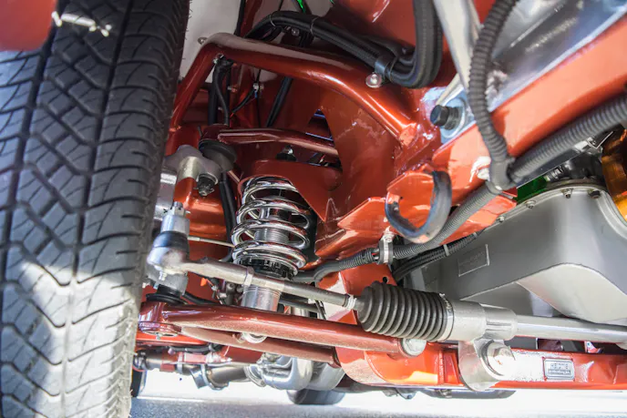 Gary did a lot to improve the rolling stock on his Mustang as well. The front clip is a Heidts Mustang II suspension kit, the rear is an Art Morrison sub-frame with ladder bars, he used QA1 adjustable coil overs on all four corners, and Wilwood disc brakes all the way around.