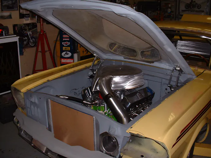 Gary taught himself how to fabricate so that he could get the car to turn out exactly how he wanted. Together with his son Shaun who went to welding school, they did pretty much everything on the car. They custom made the teardrop air box to match the hood, the front apron, the spoilers, and so many other little details on the car that it would be hard to mention them all. “You just try making stuff and never give up,” Gary said. “I watched a lot of the car TV shows and learned some of how they did it. I researched more of it and then started hammering it out.”