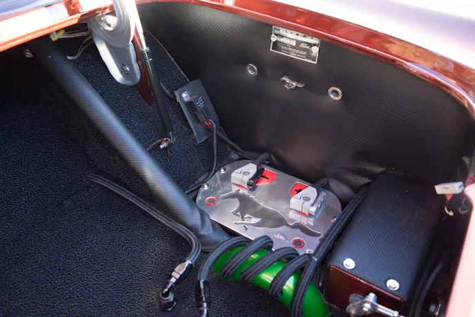 Gary built the engine in his garage with his friend Arlyn Staiger. It’s a 1969 351 cubic-inch Windsor block that is bored and stroked out to 418 cubic-inches and makes use of a Scat stroker kit. He uses an Edelbrock Victor Jr. intake and heads, Demon 920cfm carburetor, and had the heads ported by Keithcraft racing. The ignition system has also been improved with a Mallory electronic distributor and an MSD programmable 6AL2 control module. All of the power from the engine is transferred through a unique, Jeffco four-speed transmission and into a Ford 9-inch rearend.