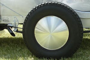 The Moon hubcap, which became popular in the fifties, is often considered a racing hubcap. “Interestingly enough, the first spun aluminum Moon wheel cover was not invented in the fifties,” Mike pointed out. “Bob Rufi, the fastest man alive in 1940, used spun aluminum hubcaps from, of all things, a WWI Jenny war plane to help streamline his 140 mph record breaking speed machine at the Bonneville Salt Flats.”