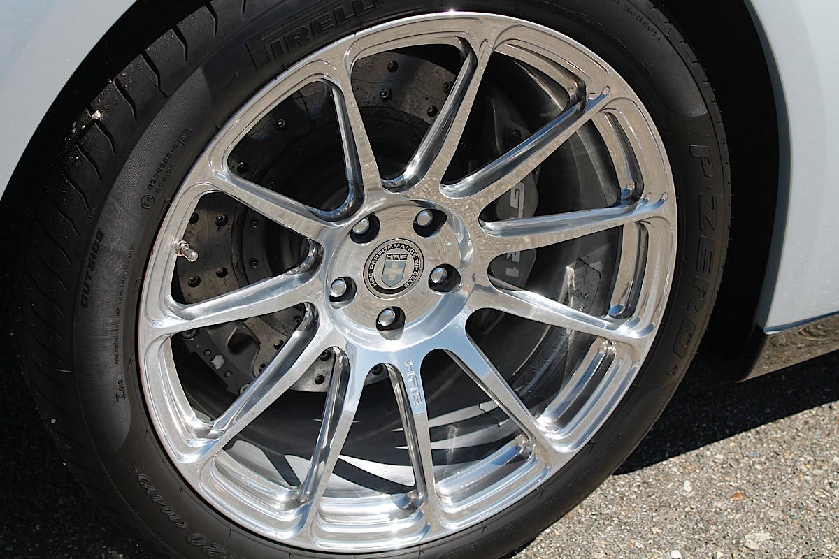 The original space frame was reinforced in strategic areas, and the entire suspension was replaced with a much wider stance. Longer control arms allow for that extra width, as well as allowing much wider wheels and tires. With the stance coming in at about 5-6 inches wider, special wheels were needed for the GTR1 and HRE was contacted for these limited 20-inch forged aluminum wheels.