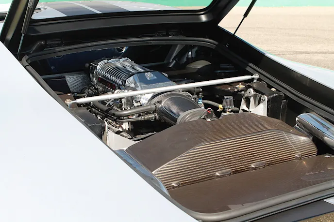 The Ford GT’s original powertrain was used as a base for this car, keeping the 5.4 liter engine and six-speed transmission. However, while the original transmission was strong enough for the power output, a higher output clutch was custom made by McLeod to handle mating the transmission to the 739 lb-ft of torque. The crankshaft is a forged steel unit for strength, and the cylinder heads are CNC ported with a slight cam profile change to complete the combustion chamber.