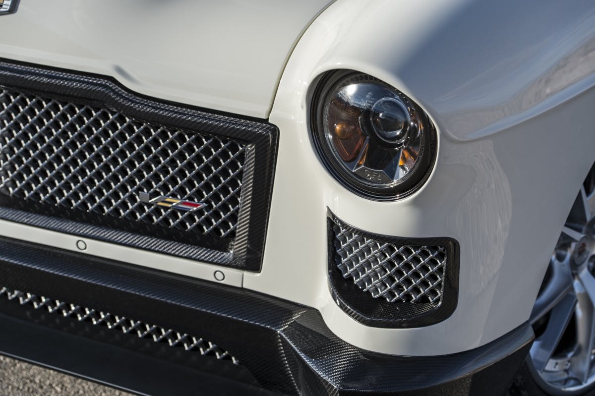 What not visible but really kicking Madame V into the modern era are the extensive amounts of carbon fiber used in the build. The hood, decklid, and bumpers are all made of this magical lightweight material. The 1948 grille has been replaced with the ATS-V’s signature mesh, and the whole body has been sprayed in the custom BASF Glasurit hue “Vivi White,” named for Rydell’s wife, Vivian. The car rides on custom 19×8-inch and 20×11.5-inch HRE Performance wheels and Michelin Pilot tires, 245/45/19 in the front and 325/30/20 in the rear.
