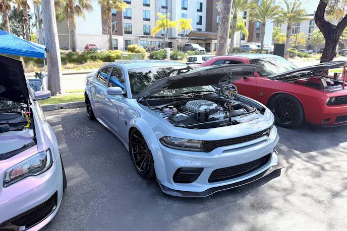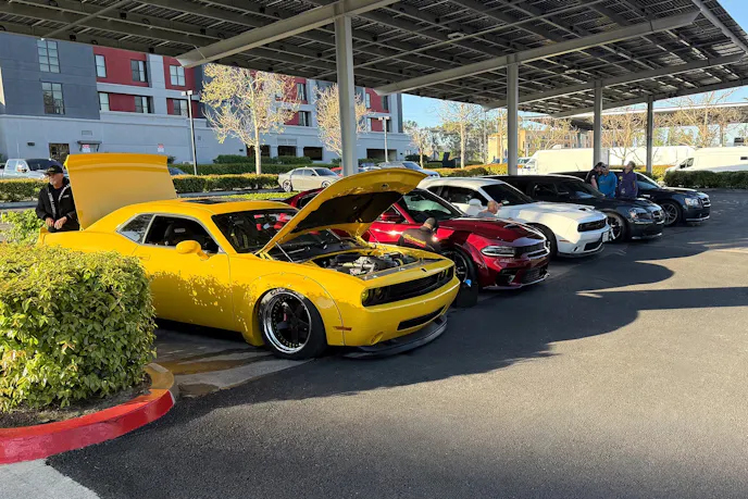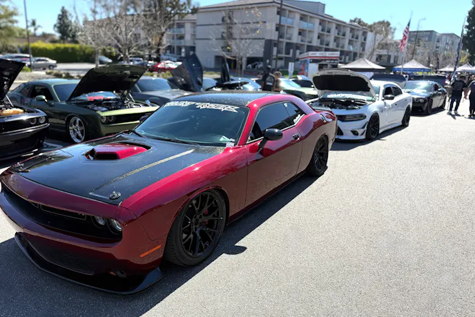 I arrived at the show site – the parking lot at the Hotel Complex in Lake Forest, California, just a few miles outside of Irvine — bright and early before the event began, and after parking my all-too-appropriate 2023 Dodge Durango SRT 392 HEMI daily driver in the spectator parking area, met up with a pair of friends I planned to take in the show with.