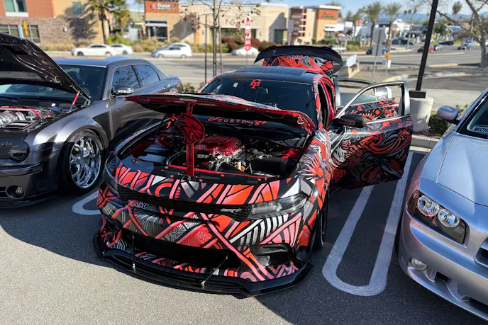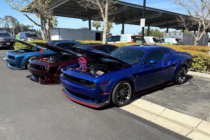 I arrived at the show site – the parking lot at the Hotel Complex in Lake Forest, California, just a few miles outside of Irvine — bright and early before the event began, and after parking my all-too-appropriate 2023 Dodge Durango SRT 392 HEMI daily driver in the spectator parking area, met up with a pair of friends I planned to take in the show with.