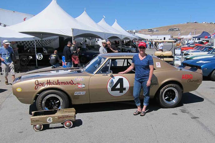 Jon met with Moore’s middle daughter, Kelly, during the 2016 Rolex Monterey Motorsports Reunion at Laguna Seca. Jon learned that Kelly, born in 1972, had never seen her dad’s Camaro. But she did have a child’s pedal car that she and her siblings grew up with, which was painted to look similar. The pedal car was displayed with the Camaro at Laguna Seca.
