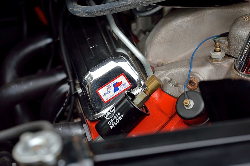 Mello’s research uncovered more information. “The block is a December 1966-dated 657 casting, as it should be,” he says. The ported camel-hump heads are by Crane Cams and are originals from the 1960s (ported by Crane in the period). The intake manifold is a prototype of the original 1967 Z high-rise, but with a December 1965 date, and an experimental GM part number on it. The cam in the original car was an Isky Z60. It is now running an Isky Z50 because Isky changed its cam specs, and the current Z50 is closer to the cam’s specs for the 1960s Z60. The headers are reproductions of the originals made by Bill Thomas Race Cars.