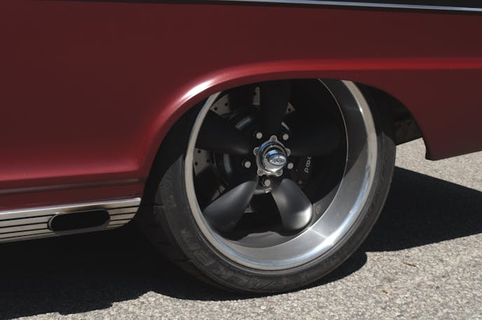 The plan (as it also was for the first car) had always aimed at much more than just a bolt-together cruiser. Ryan likes to turn corners and the Pro Touring approach appealed to him. So his plan intelligently dumped the entire stock front suspension in favor of a TCI Pro Touring front clip that offered Ride Tech triple-adjustable TQ coil-over shocks, power rack and pinion steering, and an optimized camber curve to enhance its road-holding abilities. Braking responsibilities fell to a pair of 12.2-inch Wilwood front rotors and four-piston calipers mounted on 2-inch dropped spindles.