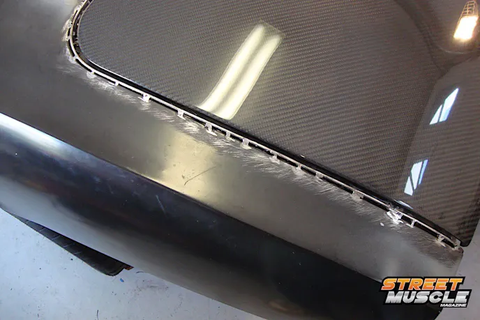 Gil shaved the side marker lights to clean up the body lines, fit custom carbon fiber panels from Anvil Auto, and trimmed the bumpers to tuck them up to the body line for a smooth finish. From there, the body modifications were complete and the car was off to paint at Dales Custom Auto.