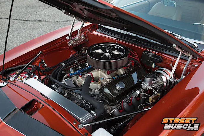 Backing up the ponies is a Mad Dog 700R4 transmission built to handle the bow tie mill with ease, with a Stage 2 shift kit and 2,400 rpm still converter. Shifting things into place is a custom Hurst Dual Gate overdrive shifter.