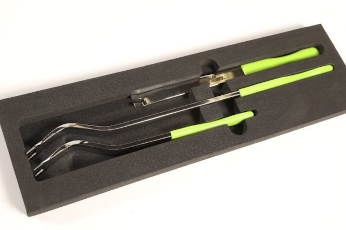 Manufactured using durable spring steel with a polished finish and rubber grips that allow for comfortable handling, the new XL Clip Lifter Set promises superior strength and exceptional grip while each lifter is in use. The 3-piece set comes with a 370 x 11mm S-shaped lifter, 245 x 11mm S-shaped lifter and a 250 x 5mm standard straight lifter, all with wedged tips, to meet all of your lifting needs and to aid in pulling even the most difficult clips.