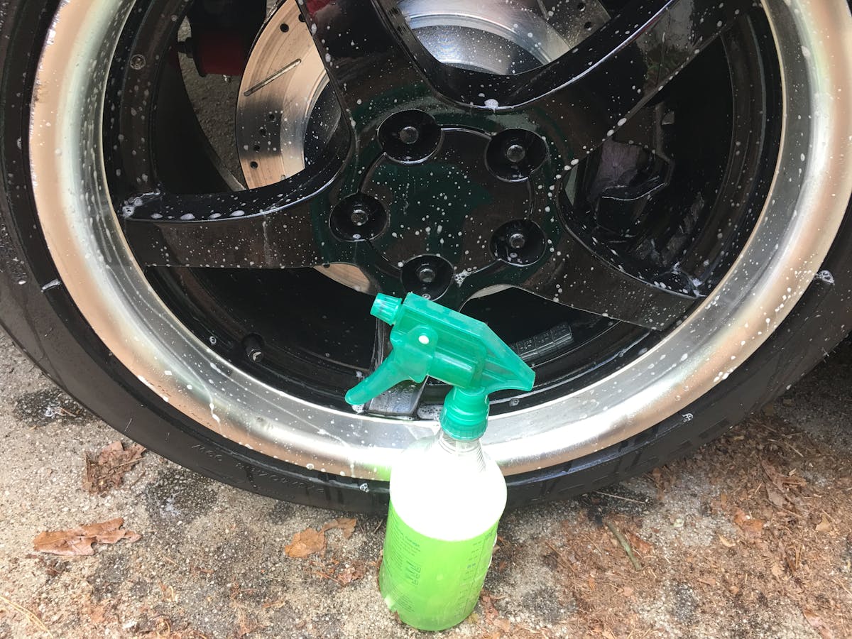 Before I got started with the complete wash, I mixed the third level of concentration to use as a bug and tar remover for the wheels and exhaust tips.