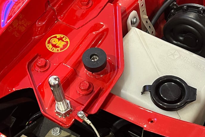 Like its fraternal twin, it has the Light Group, Rallye gauges, power disc brakes (check out how different the brake boosters are between the two), and lacks power steering. According to the owner, this makes maneuvering both cars a total pain at low speeds, especially in tight spaces. Both cars have the Collapsible spare tire option.