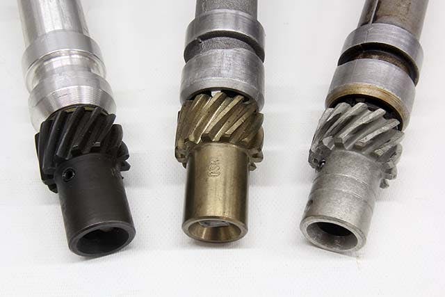 So now with three different types of cam core materials – cast iron flat tappet cams, ductile iron hydraulic (and some mechanical) rollers, and steel mechanical (including a few hydraulic) roller cams. As it currently stands, there are a total of four different distributor gears you can use – stock iron, bronze alloy, composite, and a melonized gear. There’s been plenty of confusion over which distributor gears are compatible with these different camshafts.