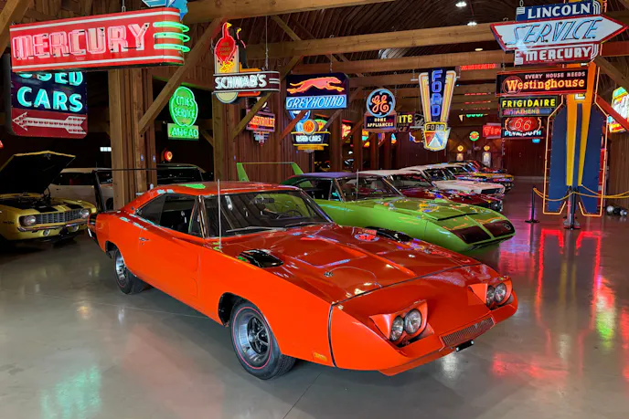 Not only will you find real Hemi Mopars, Boss 429 and Shelby Mustangs, lightweight full-size muscle and more vintage neon signs