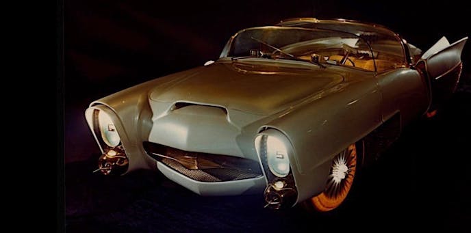 An automatic braking unit using antennaz to “look” for things in the car’s path was installed in the front bumperettes, and the wheels were made with glass elements that illuminated and acted as turn signals, while the tires boasted a revolutionary rubber compound developed by Goodyear that allowed them to actually glow in the dark.