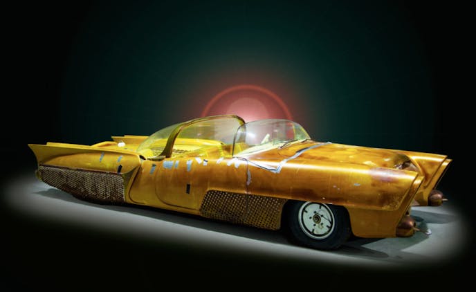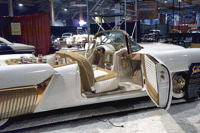 According to Mecum, “For the first time in decades, the car will be available for public viewing in its as-discovered condition as it graces the stage of Dana Mecum’s 31st Original Spring Classic Auction. Certainly a once-in-a-lifetime opportunity, the car’s appearance will not only mark its reentry into the world that has long vied for its return, but it will also mark a momentous occasion for one fortunate and ambitious collector as it crosses the auction block in search of someone to carry on its unparalleled legacy. To own the Golden Sahara is to own possibly the most memorable and certainly the most interesting car born of the 1950s, spawned from the ingenuity and talents of the eccentric but brilliant Jim Street, George Barris, Bill De Carr, Bob Metz and others. There is nothing like it in the world, and there will never be another like it again.”