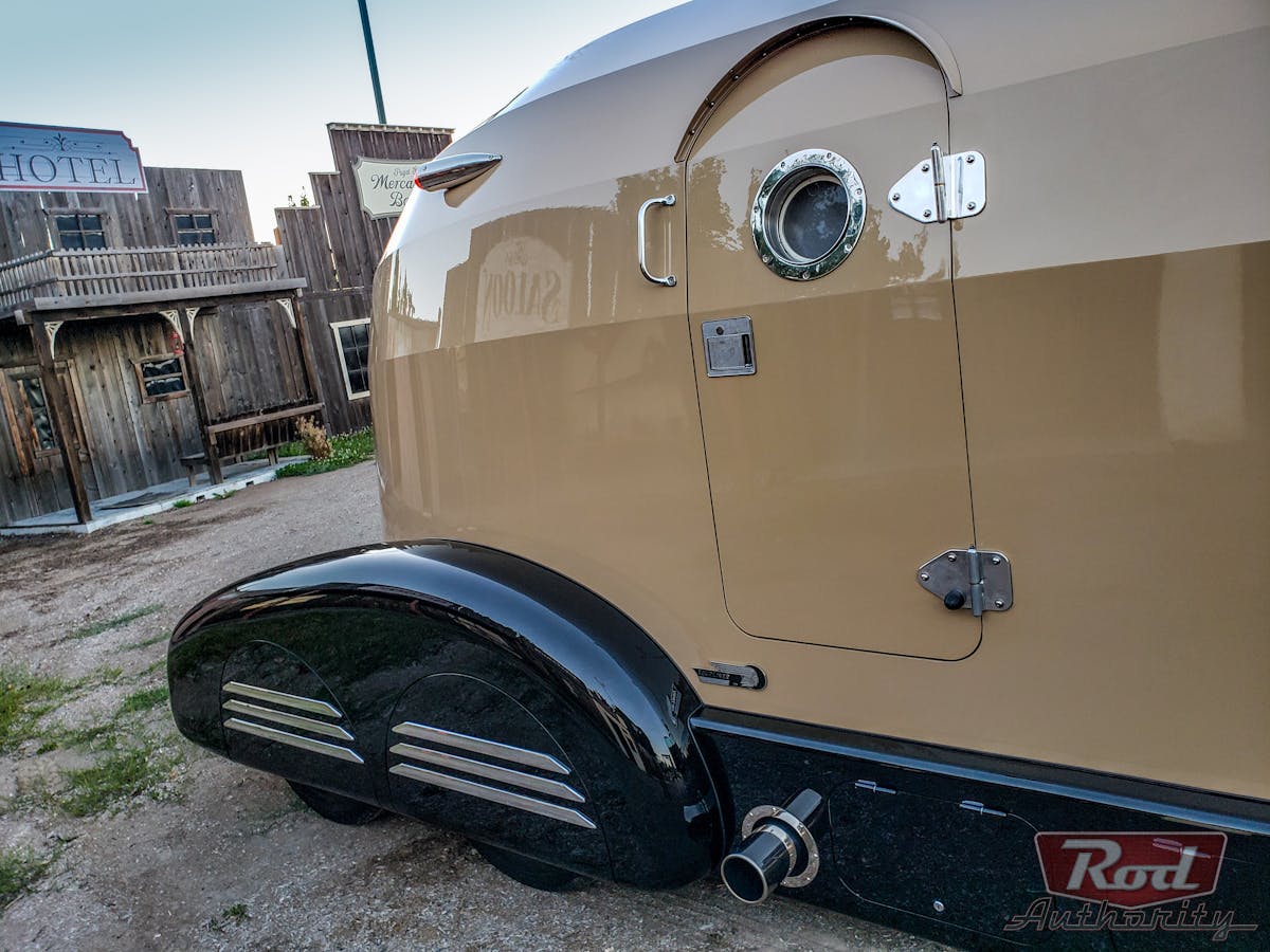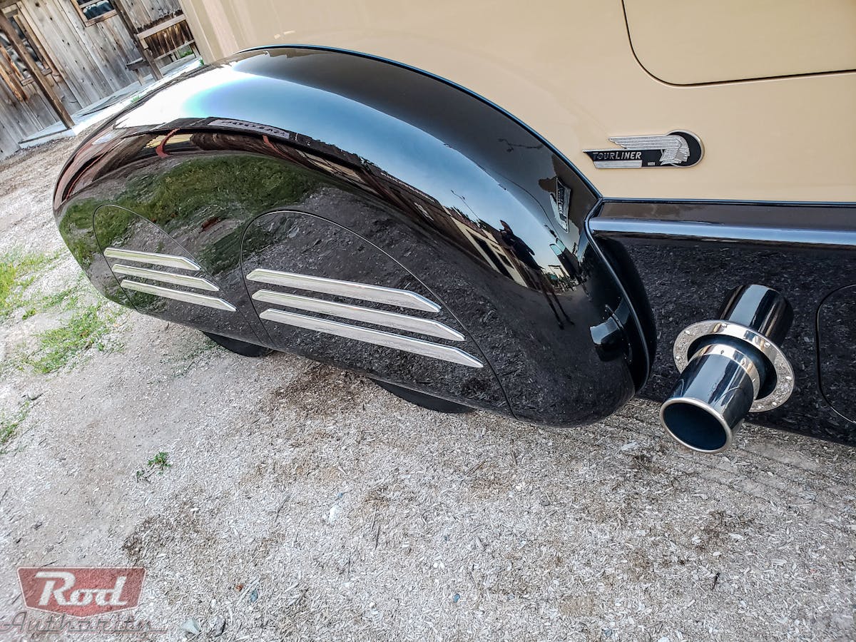 With a very clever mix of old-school and mid-century modern Chevy COE curves up front, and creased Bauhaus Zeppelin design flourishes out back, Russ artfully combined these styling cues from different eras, and christened it “Tourliner.”