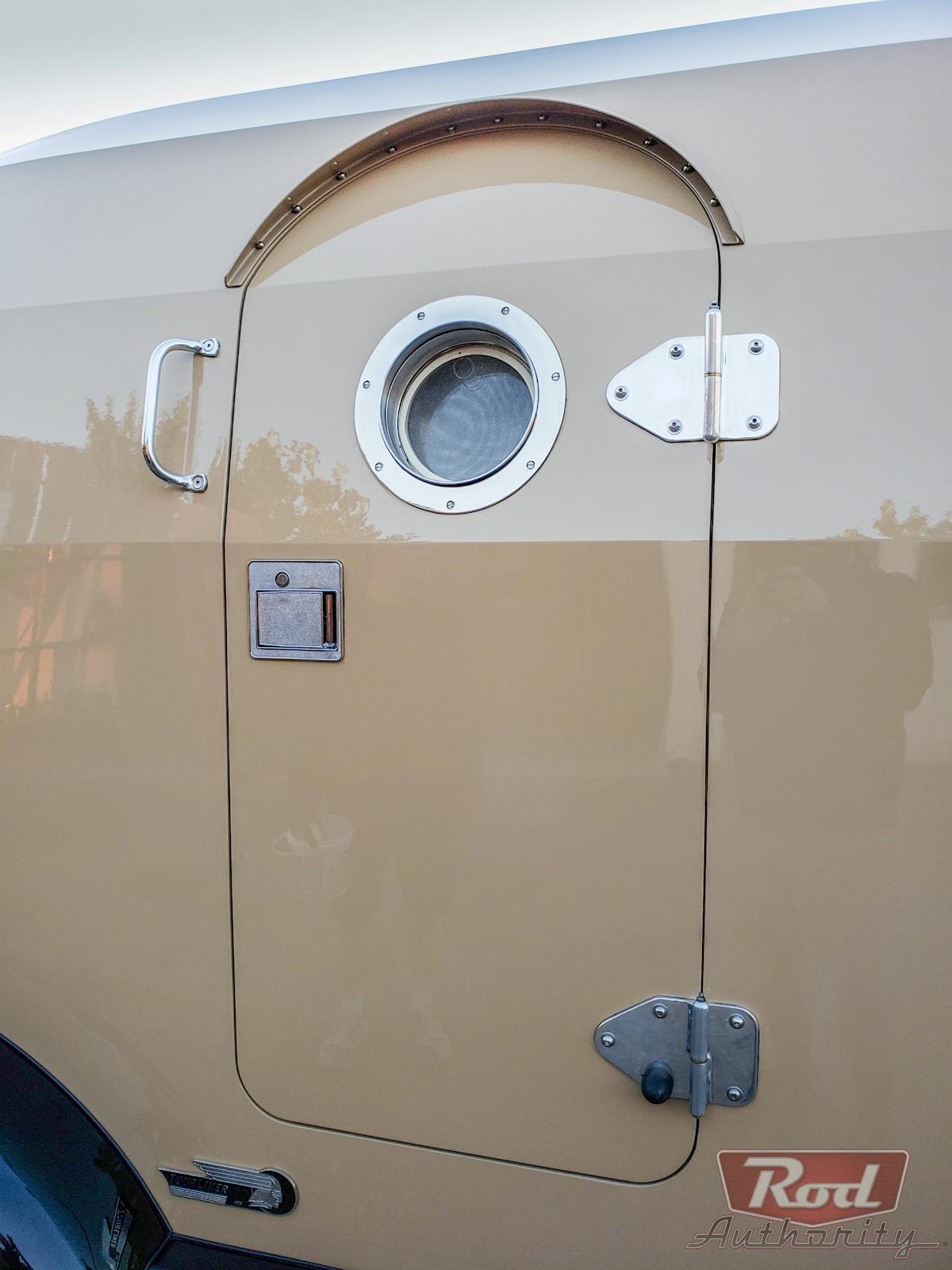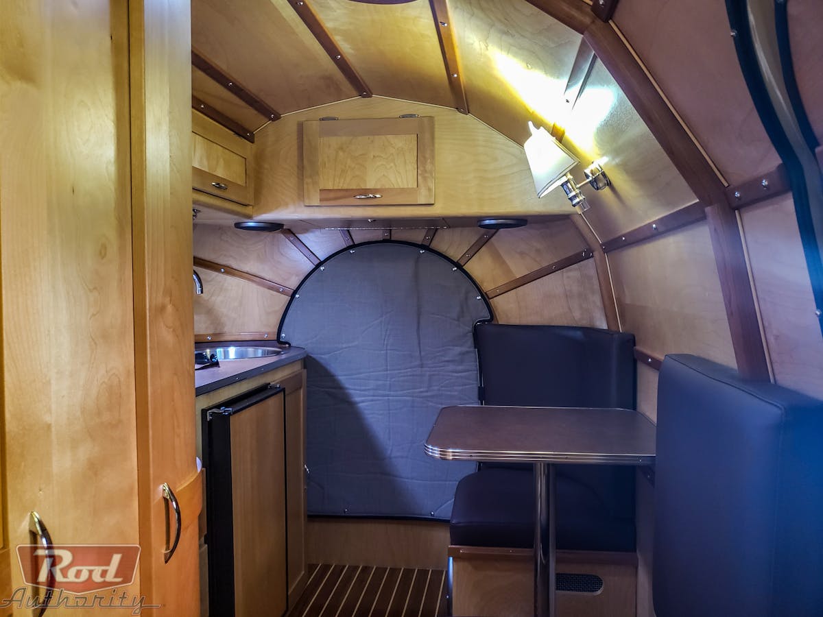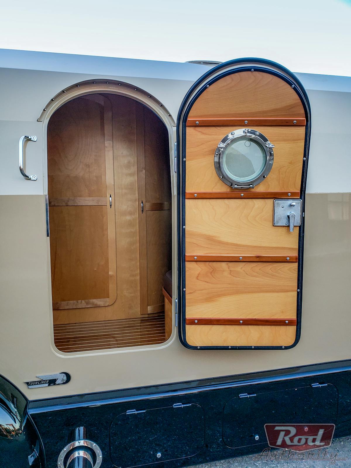 Just when you think you’ve been wowed enough, check out the living quarters. Borrowing creased lines from a dirigible blimp, the aluminum cabin is glorious is its sweeping beauty.  While not apparent at first,  the cabin has no windows to clutter up the shape. Russ had to point this out as I was too high off the beauty of Tourliner to notice.