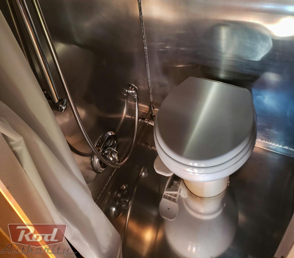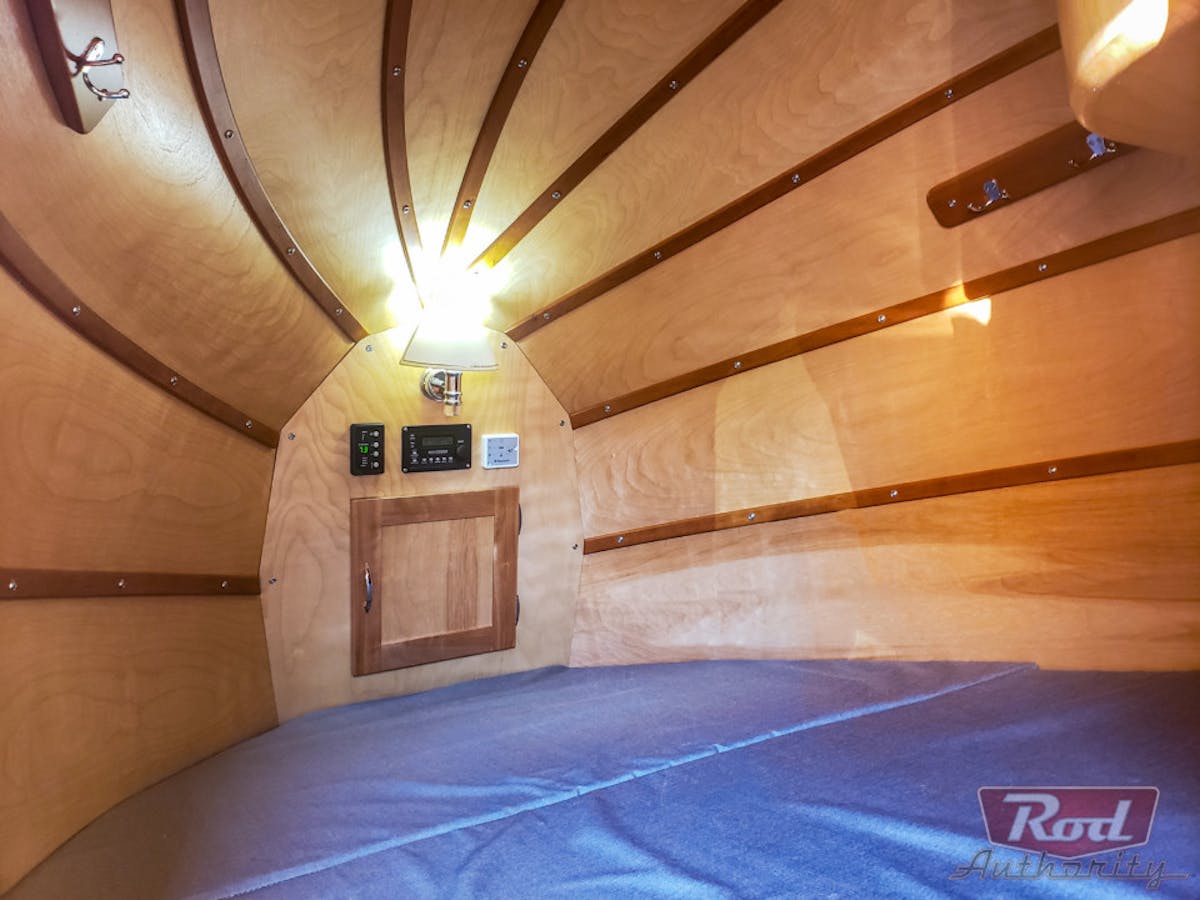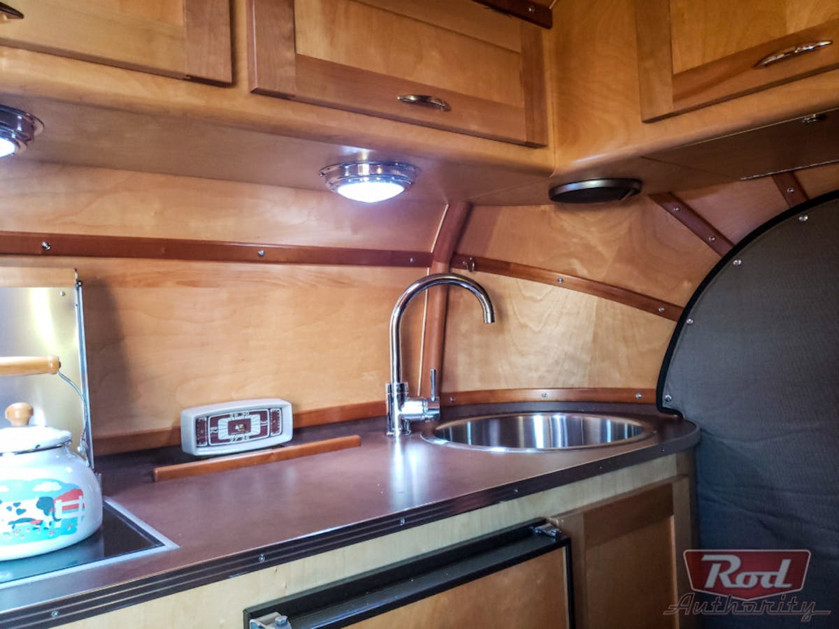 Just when you think you’ve been wowed enough, check out the living quarters. Borrowing creased lines from a dirigible blimp, the aluminum cabin is glorious is its sweeping beauty.  While not apparent at first,  the cabin has no windows to clutter up the shape. Russ had to point this out as I was too high off the beauty of Tourliner to notice.