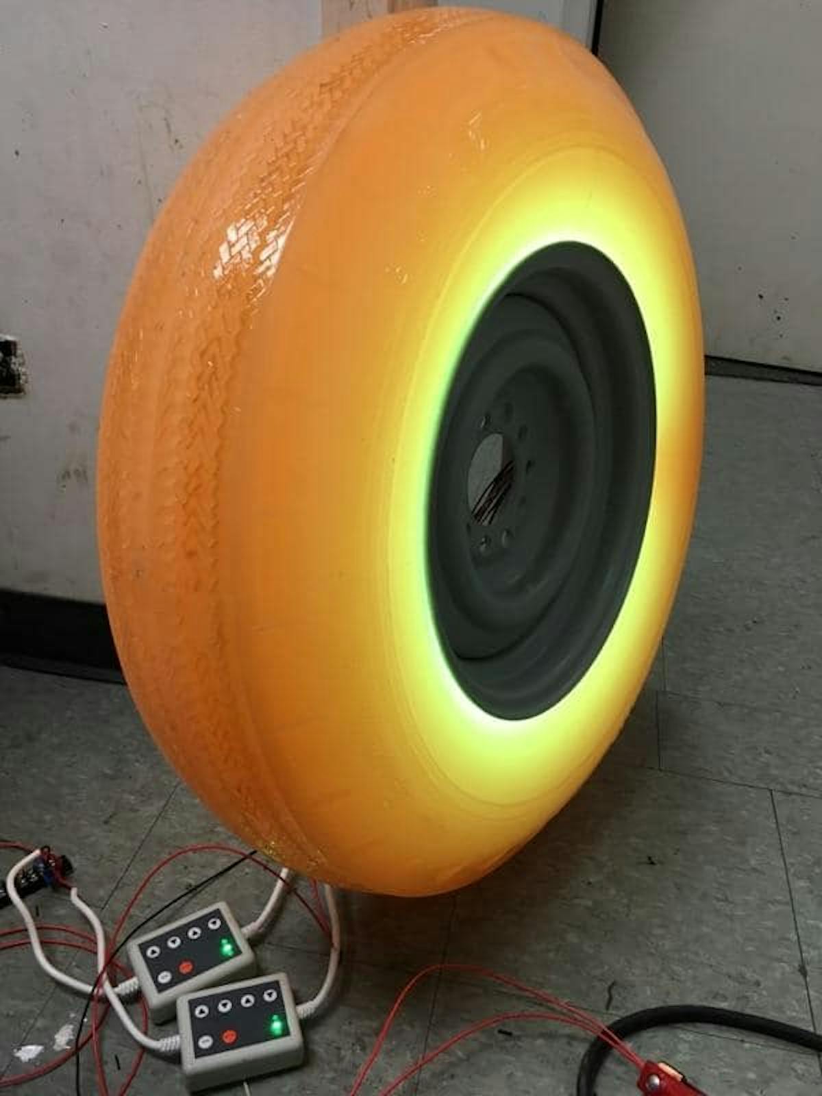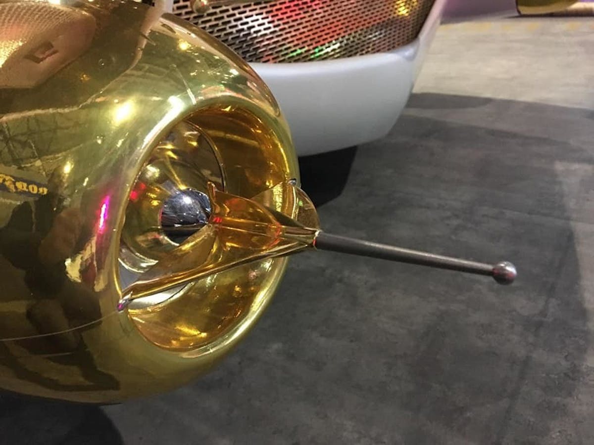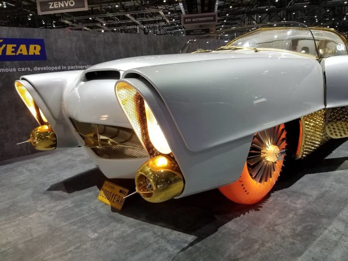 Goodyear had a major role in reproducing the illuminated neothane tires and the finished result — on display in Switzerland — are spectacular. The original “Glass Slipper” tires held air. These reproductions are solid, like a skateboard wheel, which is also made of neothane. Top speed? 5mph.