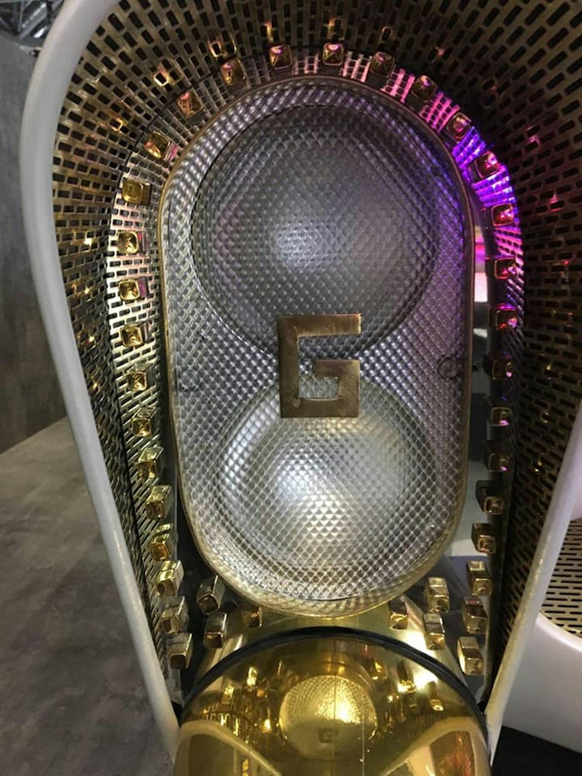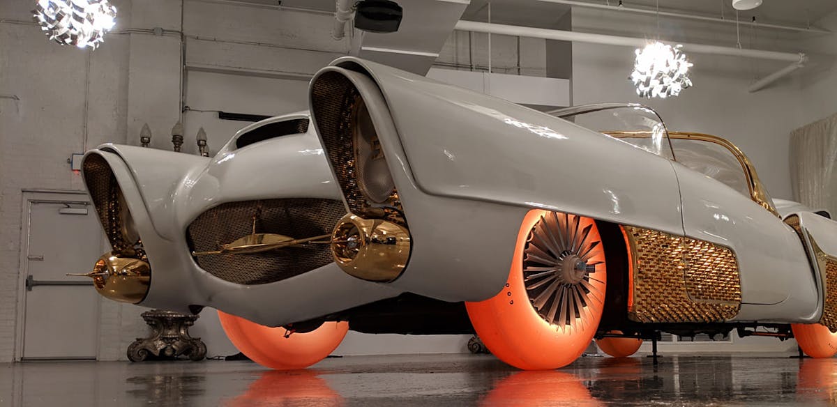 Goodyear had a major role in reproducing the illuminated neothane tires and the finished result — on display in Switzerland — are spectacular. The original “Glass Slipper” tires held air. These reproductions are solid, like a skateboard wheel, which is also made of neothane. Top speed? 5mph.