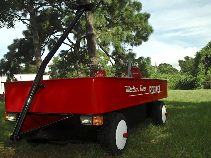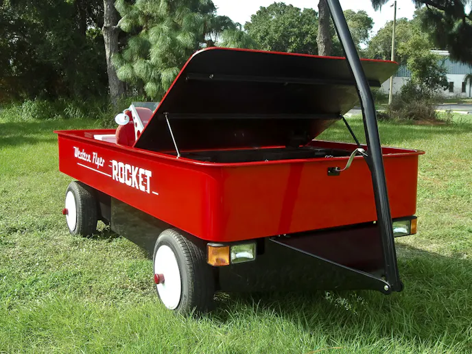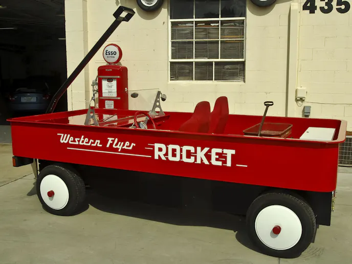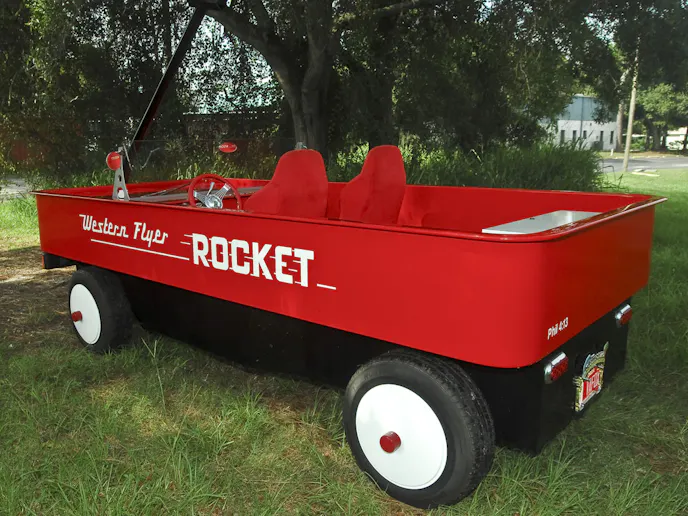 Western Auto succumbed to growing competition, was restructured during the 1970’s, sold during the 1980’s and finally ceased operations at the end of 2003. With the demise of the company, the Western Flyer line of toys, the bicycles, sleds and of course the Rocket wagons became highly sought after by collectors and are considered to be very valuable in the marketplace today.The body of Redding’s Western Flyer was the most labor intensive part of the entire build, and now that it’s completed, is truly a work of art. Redding built the entire body, with the exception of the paint and graphics, on his own.