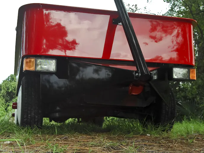 Without a doubt, the most unique, distinctive, one-of-a-kind vehicle, is located behind the door of the second out building on the grounds of Redding’s business. This vehicle has been displayed at many car shows throughout Florida, and to date has not won any awards or trophies. This is not due to any substandard construction, or less than appealing paint work, but more so because organizers have never been able to place this vehicle in any particular category.