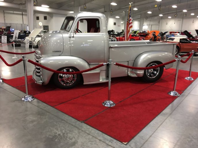 When he was satisfied with how the seats out of a Chrysler LeBaron looked and felt, he went to work on the dash. Utilizing a ’55 Chevy dash, he took the stock column out of the Chevy donor truck and mounted it below the dash. He didn’t like the look of that, so he removed it and bought an Ididit tilt column. It certainly looked a bit slimmer than the massive stock Chevy unit.