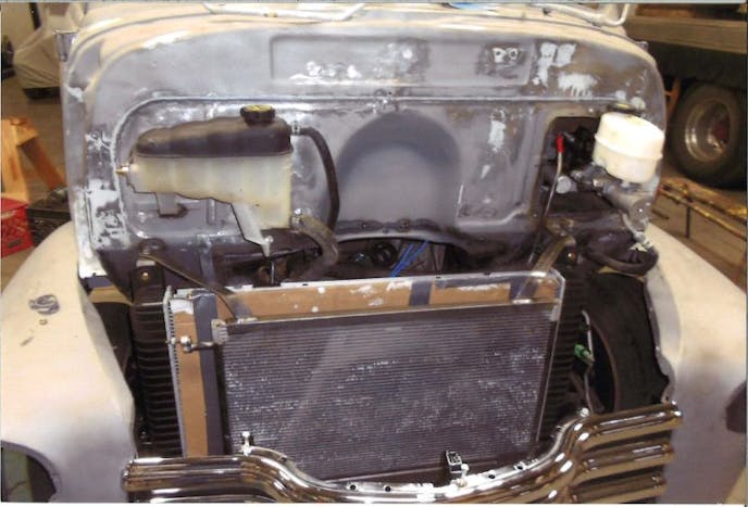 For something just a bit different on the dash, Dan used ‘39 Chevy taillight housings for the A/C vents. The lower portion of dash is hand-built and Dan will use after-market gauges
