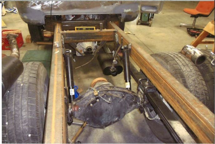 Once he had the frame squared up, he added a Chevy truck power steering box, built some body mounts and set the cab on the frame. Using a combination of Dodge and Chevy brakes, he added a Hydroboost master cylinder to help with stopping power.
