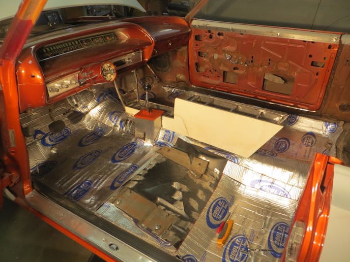 After the car is painted, the bucket seats will have been upholstered and the interior door panels should be ready to be put back in. The headliner will be kustom made of the same vinyl used on the seats and the carpet will be loop and a color to match.
