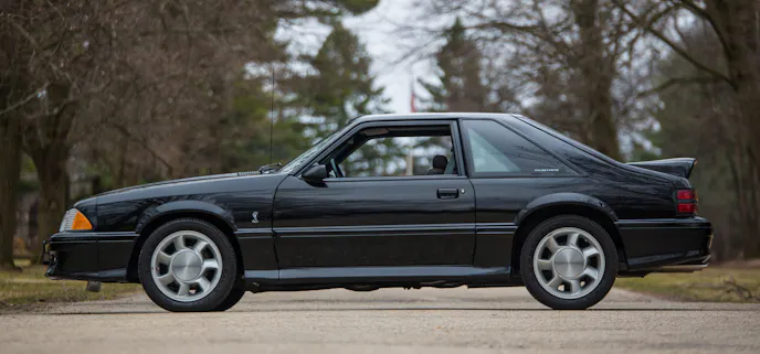 The limited-production Mustang SVO (Special Vehicle Operations) used the new, rapidly developing technology of turbocharging aimed at what Ford’s literature described as “the sophisticated driver.” A unique double spoiler sat on the trunk lid and 5-lug wheels set the SVO apart visually.