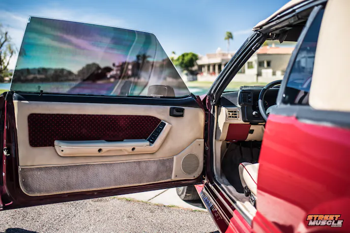 Seats are often greasy, split, and collapsed, leaving you feeling like you’re sitting on the floor. The inner sides of the seats tend to collapse, giving even your mom a “Gangsta Lean.” Headliners are typically cigarette burned or dirty, even on otherwise tidy examples, and the map lights rarely work. It is rarer still to find a Fox Mustang ashtray door which will actually remain closed.