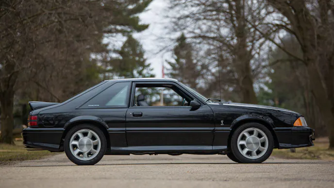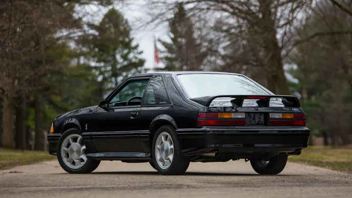 The limited-production Mustang SVO (Special Vehicle Operations) used the new, rapidly developing technology of turbocharging aimed at what Ford’s literature described as “the sophisticated driver.” A unique double spoiler sat on the trunk lid and 5-lug wheels set the SVO apart visually.
