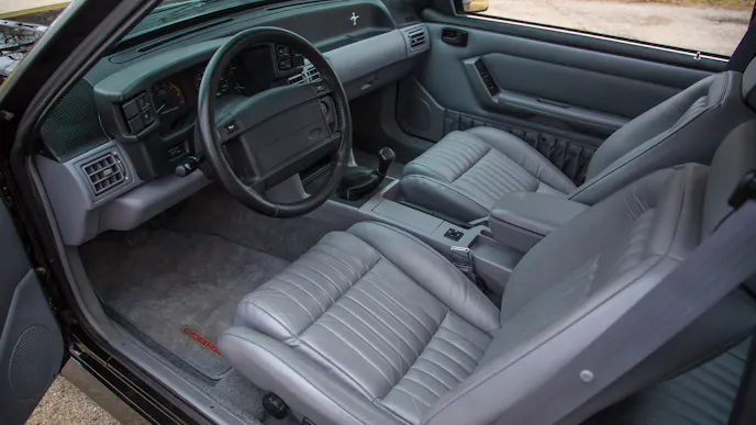 Begin with looking at the exterior – Is the paint fresh? Are the wheels original? Are the lights original? Many Fox-body Mustangs have been modified by enthusiastic owners. Equally many have been wrecked and rebuilt, often inexpertly. Spotting details like original lights or the correct positioning of the “Ford” and “5.0” badges can give you an idea of whether this example is original.
