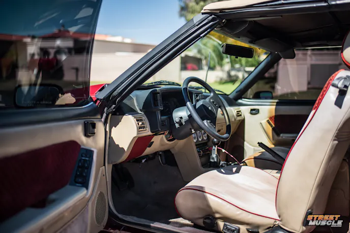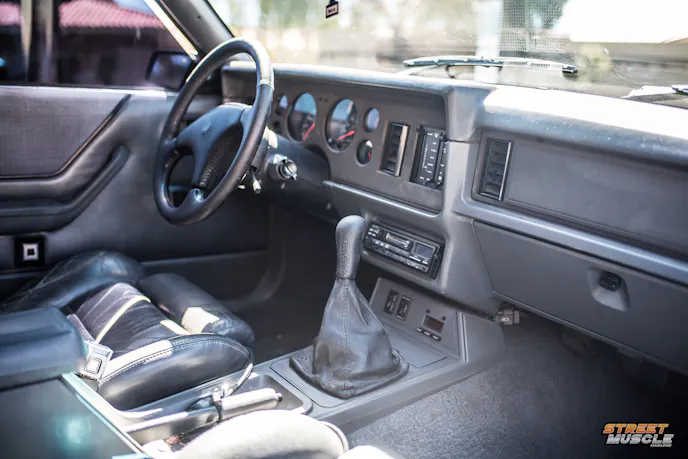 Seats are often greasy, split, and collapsed, leaving you feeling like you’re sitting on the floor. The inner sides of the seats tend to collapse, giving even your mom a “Gangsta Lean.” Headliners are typically cigarette burned or dirty, even on otherwise tidy examples, and the map lights rarely work. It is rarer still to find a Fox Mustang ashtray door which will actually remain closed.