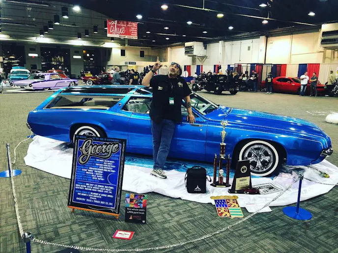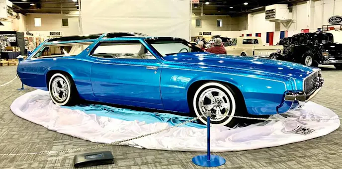 The Grand National Roadster Show was as fantastic as ever this year. An army of automotive blockbusters rolled into the Pomona Fairplex, in California, but there was one car that really won our hearts, Dale Gould and Tony Wood’s restored 1967 Thunderbird Wagon. It was originally christened “Moody Blue” back in the day but has been renamed “George,” to honor the car customizing trailblazer George Barris.