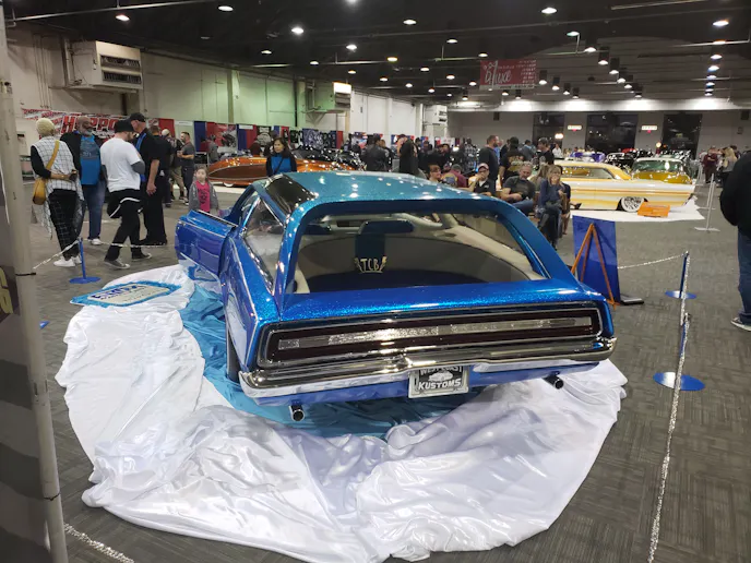 With Steve Carpenter overseeing the project, Tony and “Radio” Bob Falini brought the car back to the sparkling kustom blue canoe you see here.