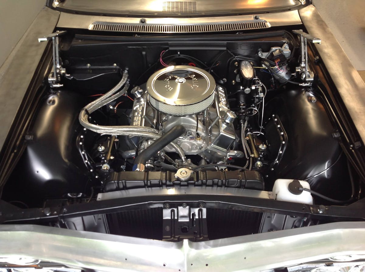 The 383 is equipped with a Holley four-barrel Street Avenger carburetor, Trick Flow camshaft, Eagle rotating assembly, Silver Street Pro balancer, HEI distributor, Edlebrock Performer Intake, and Hedman long-tube headers. Promaxx aluminum heads and Magnaflow stainless-steel dual exhaust encourages breathing, while the original Muncie M21 four-speed keeps part of the history of the car intact. At the rear, Tony also kept the original 12-bolt housing, but added a Yukon 3.31-geared positraction differential.