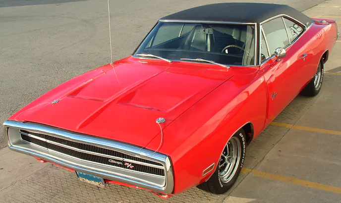 The hood indentations between this '70 model and the new 2011 Charger obvious shared cues. Note that the '70's door scoop is actually recessed on the 2011.