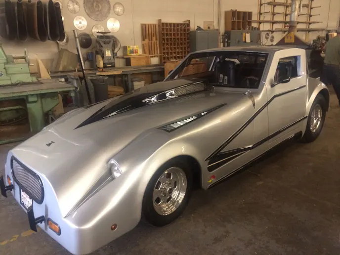 On the one hand, you have an idea that was brought to fruition. It has a 496 cubic inch GM crate motor (with 502 on the valve covers), a Ford 9-inch rearend, and dual quads. That’s a great start, and it has a flip front end and gullwing doors, pretty cool. But on the other hand, the vehicle is made of wood and looks like the bastard step child of a Gremlin and a Saab Sonnet.