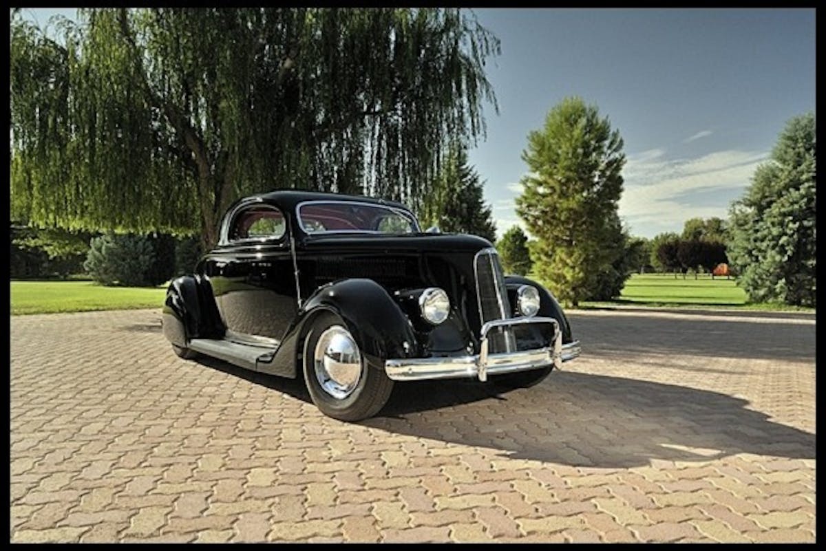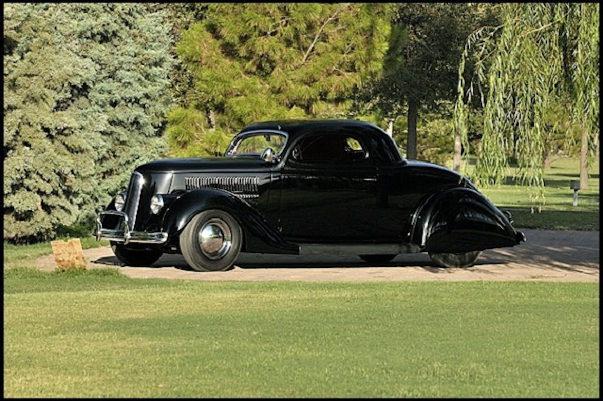 Purchased from the original owner in 1947, the 1936 three-window was originally intended to tow Calori’s hot rod race car. But it wasn’t long before local handyman and Calori’s friend Herb Reneau convinced the avid racer to give his new “tow vehicle” the custom treatment. What resulted was known as the Jack Calori Coupe, a custom hot rod with a Z’d frame in the rear, drop front axle, 3-inch chop, 1939 LaSalle front grill, Buick teardrop fender skirts and 1940 molded Chevy headlights.